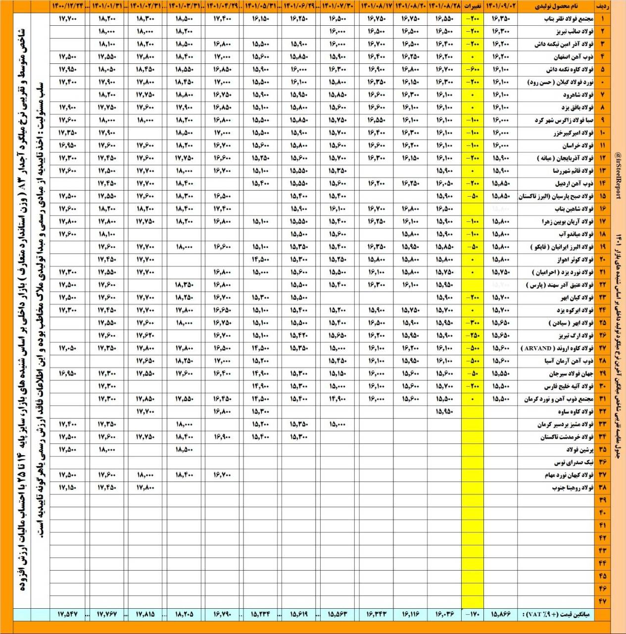 زمان مطالعه: < 1دقیقهمتوسط نرخ ؛ چهارشنبه؛ بازار میلگرد آجدار ( وزن شاخه تولیدی استاندارد بازار )؛ بر اساس شنیده های این بازار، حدود ۱۵،۸۶۵ تومان +vat ( حدود ۱۴،۵۵۵ تومان بدون احتساب مالیات ارزش افزوده ) برآورد گردید که نسبت به روز شنبه با کاهش تقریبی و متوسط حدود ۱۷۰- تومان همراه بوده است.