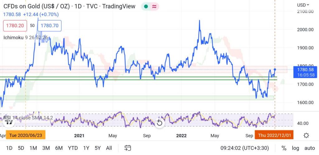 نمودار انس طلا 2022/12/01 : انس 1780 دلاری شد