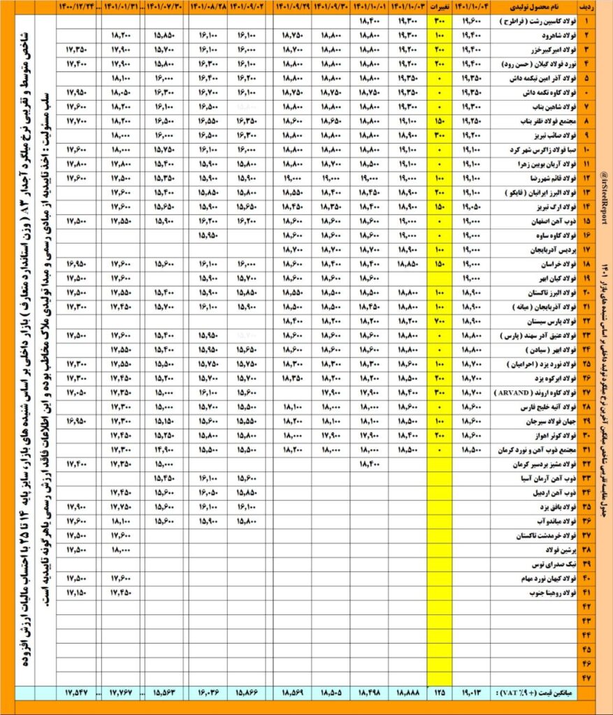 زمان مطالعه: < 1دقیقه▪️متوسط نرخ امروز بازار میلگرد آجدار ( وزن شاخه تولیدی استاندارد بازار )؛ بر اساس شنیده های این بازار، حدود ۱۸،۸۹۰ تومان +vat ( حدود ۱۷،۳۳۰ تومان بدون احتساب مالیات ارزش افزوده ) برآورد گردید که نسبت به روز پنجشنبه هفته گذشته با افزایش تقریبی و متوسط حدود ۳۹۰ تومان همراه بوده است. ۱۴۰۱/۱۰/۰۳